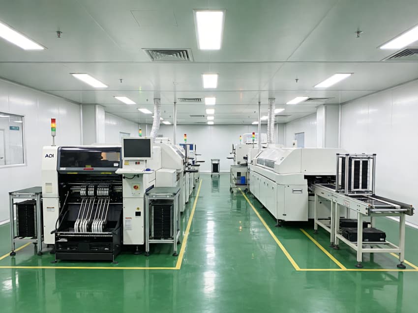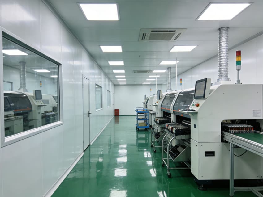 SMT 核心生產(chǎn)區(qū):針對高速貼片機、回流焊等設備做了地面承重加固與管線預埋,配置伸縮式通風除塵管道,及時收集焊煙與粉塵;防靜電工作臺搭配 LED 工位燈,保障貼片、焊接的精度與效率。