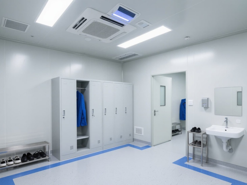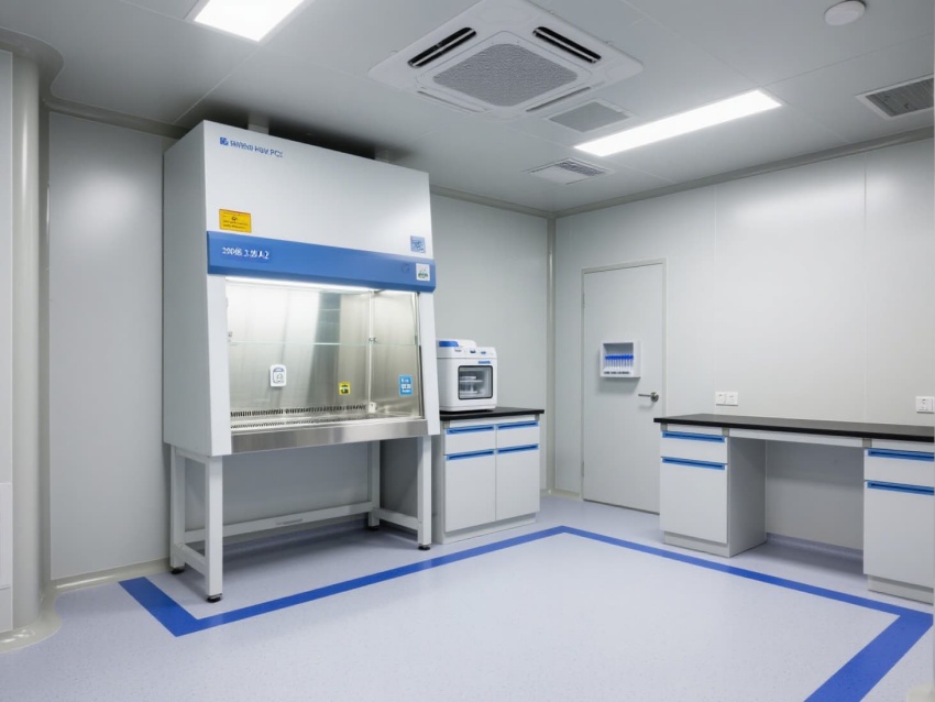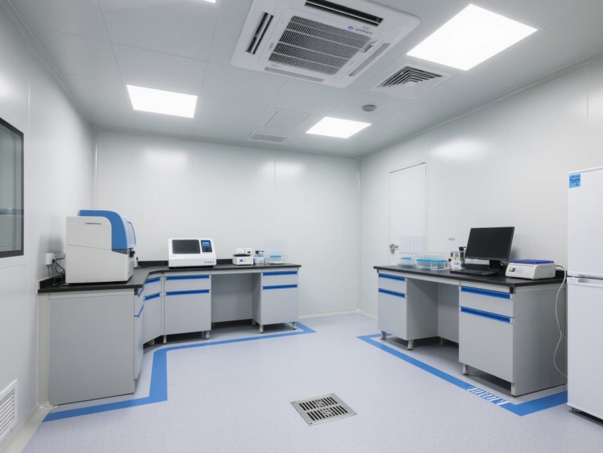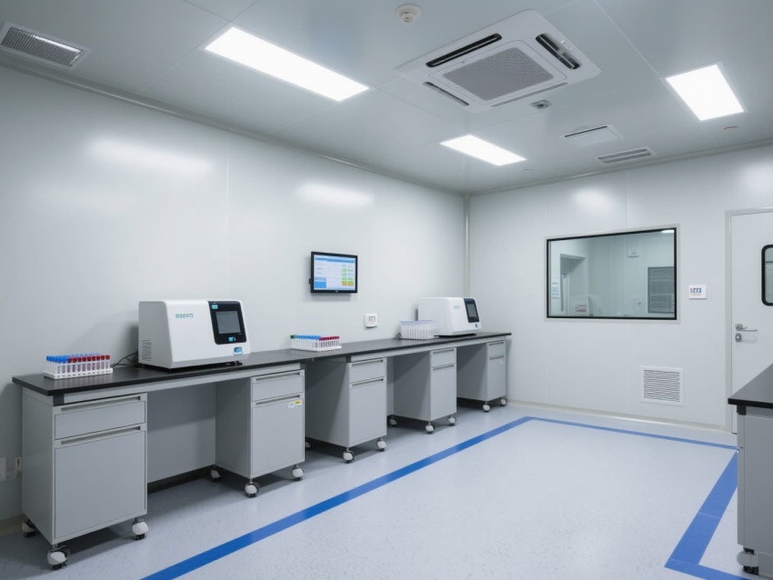 頂部高效過濾器與定向氣流系統(tǒng)維持每小時12-15次空氣置換,確保潔凈度達標。墻面嵌入式消毒裝置與紫外燈系統(tǒng),可實現(xiàn)每日全方位消殺。實驗區(qū)配備負壓通風(fēng)柜與生物安全柜,臺面采用耐腐蝕環(huán)氧樹脂材質(zhì),適配PCR反應(yīng)的精密操作。
