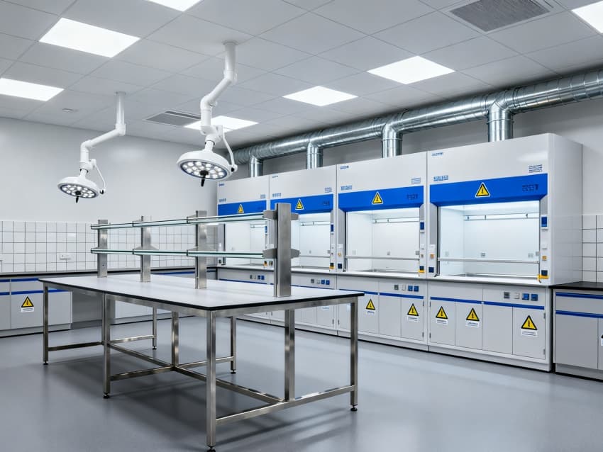本生化研究實驗室凈化工程嚴格遵循ISO7級潔凈標準,將實驗空間科學劃分為四大核心功能區域:樣品前處理區配備通風櫥、震蕩儀等預處理設備,采用負壓設計防止交叉污染;試劑配制區設有獨立的天平室與超純水系統,通過溫濕度智能調控系統將環境參數穩定控制在±1℃與45%-60%RH;精密檢測區配置防震臺與電磁屏蔽裝置,可滿足高效液相色譜、質譜儀等精密儀器的運行需求;無菌操作區配備層流凈化工作臺與生物安全柜,配合動態浮游菌監測系統,確保實驗環境達到百級潔凈度標準。各功能區通過氣密式緩沖間與機械互鎖傳遞窗形成物理隔離,構建起三級防護屏障。在保障蛋白質分離純化、核酸提取擴增等常規實驗高效開展的同時,還專門設計了酶活性檢測專用恒溫恒濕實驗室,采用獨立的凈化空調系統與UPS不間斷電源,可支持對環境參數高度敏感的高精度研究項目。此外,工程特別設置雙通道應急處理系統,包含緊急洗眼裝置、消防噴淋系統與防化物資儲備間,配合逃生路線熒光標識與應急照明系統,全方位保障實驗人員安全與科研數據完整。?