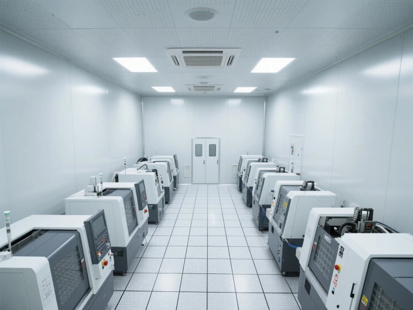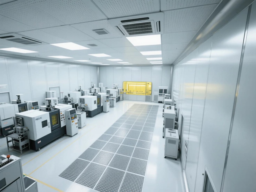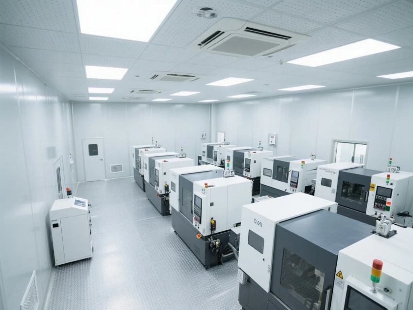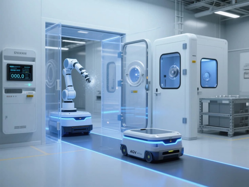 模塊化功能單元:劃分微米級加工區(qū)(黃光照明)、光學(xué)檢測區(qū)(黑箱設(shè)計)、物料緩存區(qū)(負(fù)壓隔離)