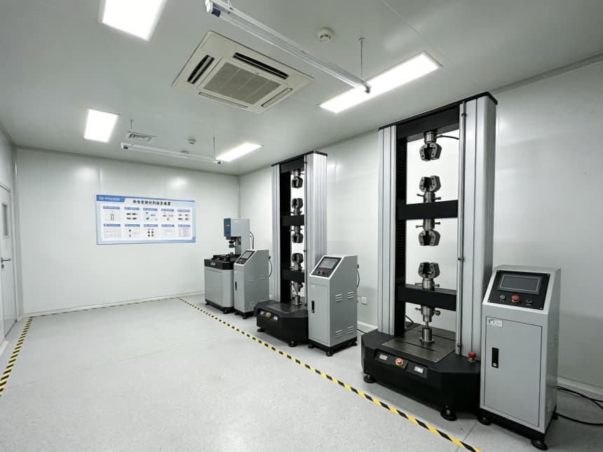 內部檢測空間均以淺灰色耐磨地坪搭配白色無縫潔凈墻面,視覺整潔且適配檢測核心需求。淺灰色地面選用高硬度環氧材質,抗壓耐磨、抗污易清潔,可耐受檢測過程中各類試劑殘留與設備搬運磨損;白色墻面采用環保抗菌涂層,平整度高、反光均勻,搭配嵌入式防眩光照明,為精密檢測提供清晰穩定的視覺環境,減少誤差干擾。