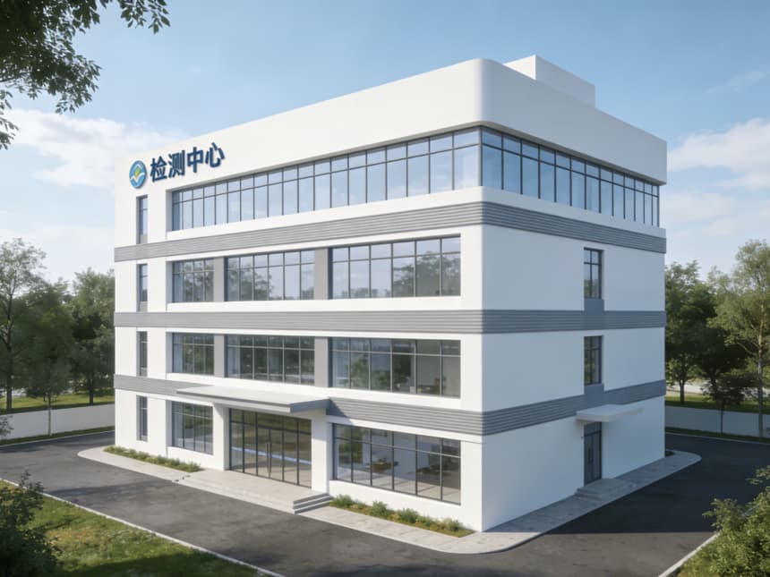 本次呈現的檢測中心整體風格簡約嚴謹、專業統一,完美適配各類樣品檢測、精度校準、數據分析等場景需求。檢測中心外立面采用淺灰色石材搭配大面積透明玻璃幕墻,既彰顯檢測場所的沉穩專業,又保障內部充足自然光,入口區域設無障礙通道及標識系統,兼顧實用性與便捷性。