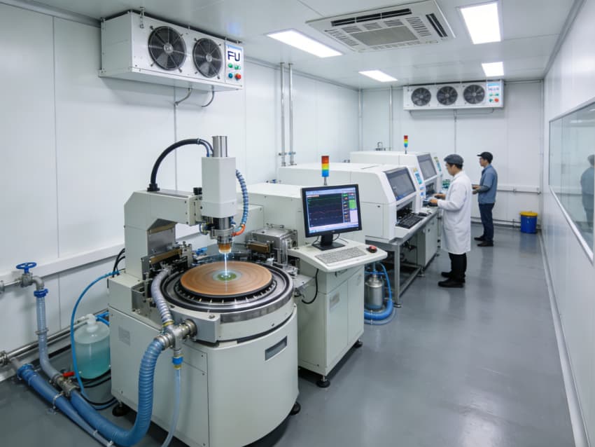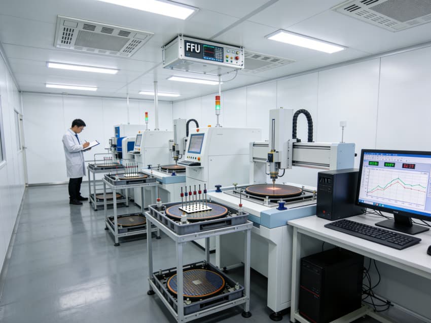 集成電路制造廠房?jī)?nèi)部采用灰色地面與白色墻壁的簡(jiǎn)約科技風(fēng)格,嚴(yán)格契合半導(dǎo)體行業(yè)Class 6級(jí)潔凈標(biāo)準(zhǔn),精準(zhǔn)匹配芯片制造對(duì)微塵、靜電、溫濕度的極致嚴(yán)苛要求。灰色地面選用防靜電高耐磨環(huán)氧自流平材質(zhì),經(jīng)基層固化、激光找平、防靜電涂層等多道精密工序,表面平整度誤差≤0.5mm/m,防靜電性能穩(wěn)定在10?-10?Ω,可耐受高頻次清潔消殺與精密設(shè)備碾壓,同時(shí)具備強(qiáng)抗化學(xué)腐蝕特性,適配光刻膠、蝕刻液等特種物料防護(hù)。