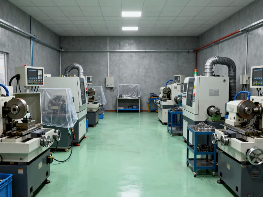 全車間統一預留標準化電源接口、壓縮空氣管路及 coolant 回收通道,層高5米適配各類大型CNC設備安裝調試。地面隱形標識清晰劃分加工區、通道區及安全區域,墻面張貼設備操作規范預留位。整體設計兼顧實用性與安全性,為精密CNC加工提供穩定、高效的生產環境,助力保障零件加工精度與生產效率。