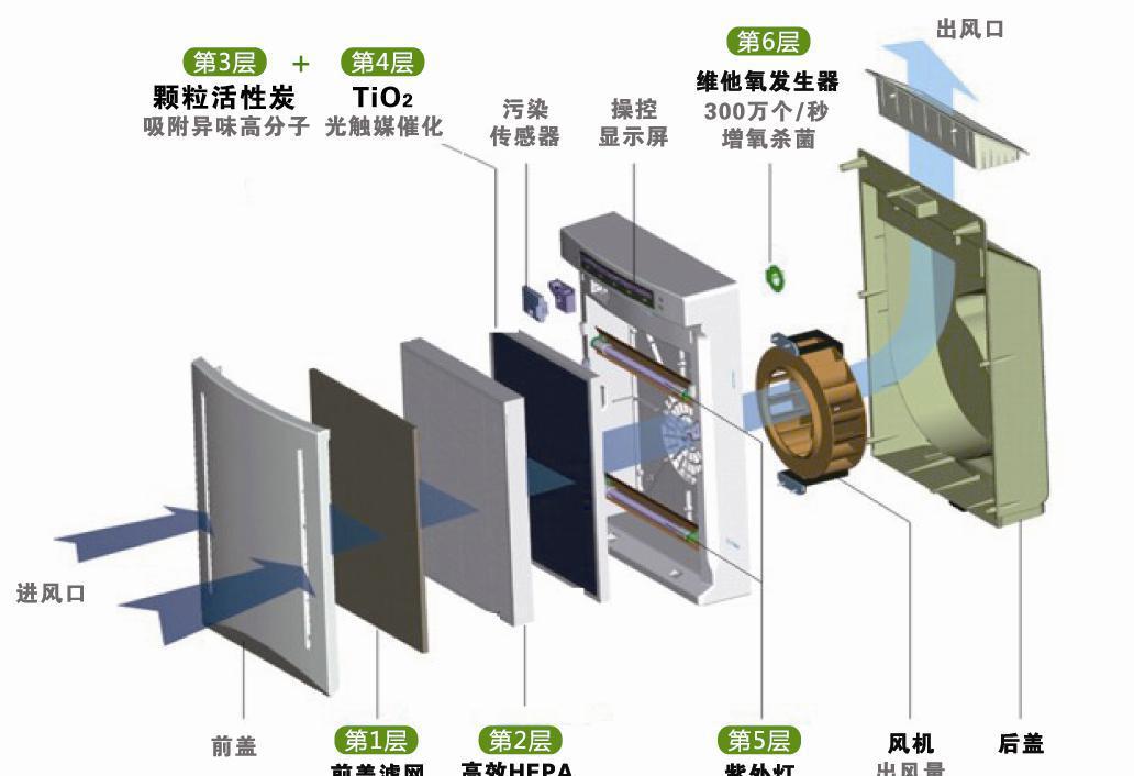 原理:空氣流動場,過濾通風(fēng),更新空氣