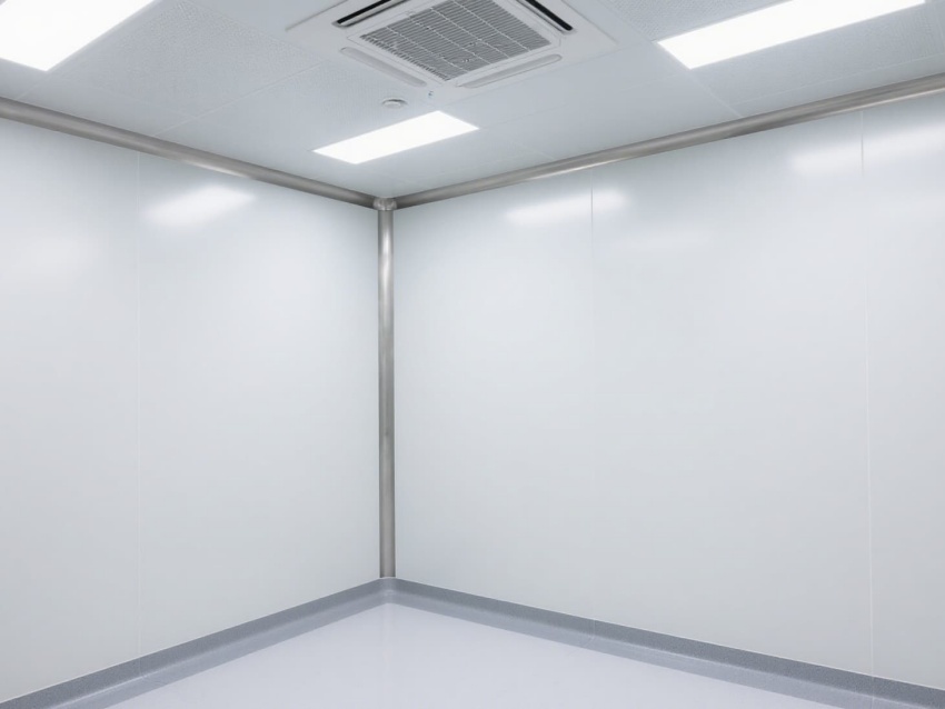 車間以白色抗菌彩鋼板為主體建材,搭配淺灰防靜電地坪,墻面與地面的圓弧過渡設計消除衛生死角,便于徹底清潔消毒。頂部嵌入式高效送風口形成垂直層流,配合側下回風系統,實現每小時15-25次的空氣置換,持續維持潔凈正壓。?