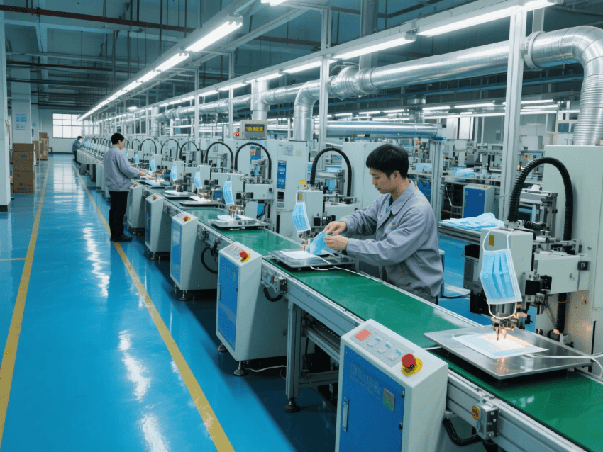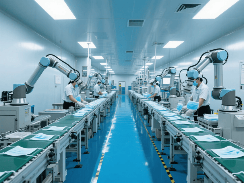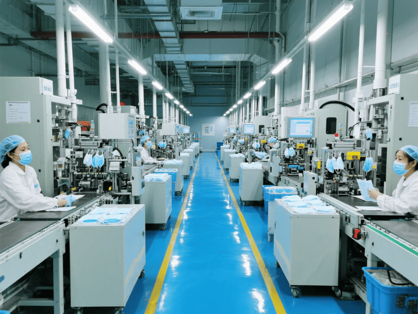 本方案采用"醫(yī)療工業(yè)極簡(jiǎn)風(fēng)",符合YY/T0969-2013口罩行業(yè)標(biāo)準(zhǔn)。車(chē)間按功能分區(qū):